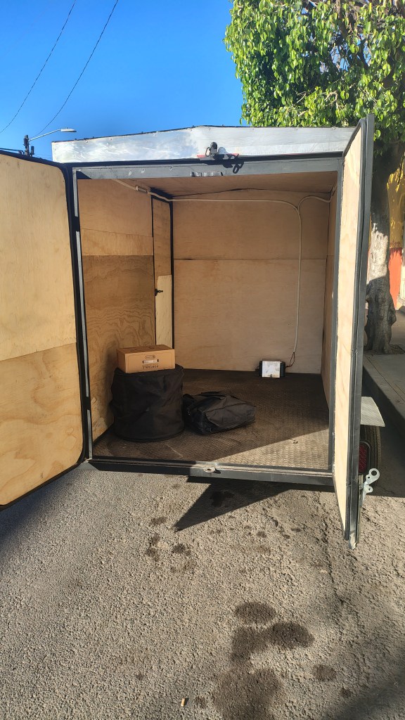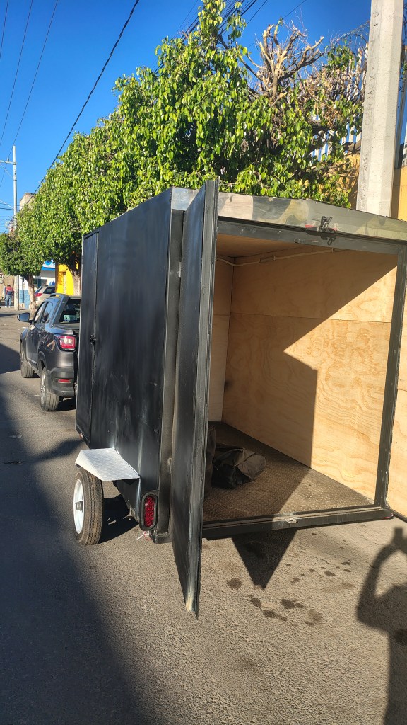 Remolque tipo caja seca capacidad de 900 kg 1.5 ancho 1.8 alto 2.5 metros de largo precio $ 40,000 , se incluye bateria de 222 wh con entradas para cargar con panel solar , desde casa y desde el auto, 2 salidas ac 120 voltios para amenidades.